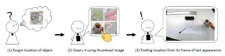 People spend an enormous amount of time and effort looking for lost objects. To help remind people of the location of lost objects, various computational systems that provide information on their locations have been developed. However, prior systems for assisting people in finding objects require users to register the target objects in advance. This requirement imposes a cumbersome burden on the users, and the system cannot help remind them of unexpectedly lost objects. We propose GO-Finder (“Generic Object Finder”), a registration-free wearable camera-based system for assisting people in finding an arbitrary number of objects based on two key features: automatic discovery of hand-held objects and image-based candidate selection. Given a video taken from a wearable camera, GO-Finder automatically detects and groups hand-held objects to form a visual timeline of the objects. Users can retrieve the last appearance of the object by browsing the timeline through a smartphone app. We conducted user studies to investigate how users benefit from using GO-Finder. In the first study, we asked participants to perform an object retrieval task and confirmed improved accuracy and reduced mental load in the object search task by providing clear visual cues on object locations. In the second study, the system’s usability on a longer and more realistic scenario was verified, accompanied by an additional feature of context-based candidate filtering. Participant feedback suggested the usefulness of GO-Finder also in realistic scenarios where more than one hundred objects appear.